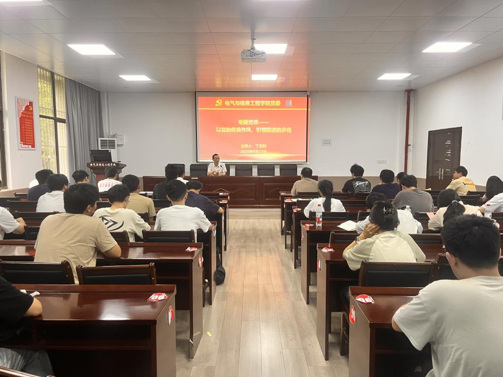 为进一步教育引导新发展党员铭记入党初心、强化党员意识、坚定理想信念,深入贯彻中央八项规定精神学习教育,发挥党员先锋模范作用。6月22日上午,学院党委在电气楼113教室举行2025年新党员入党宣誓暨专题党课。学院党委书记丁忠利、辅导员蒋安东、2025年上半年新发展党员及学生电气工程党支部全体党员参加了活动。