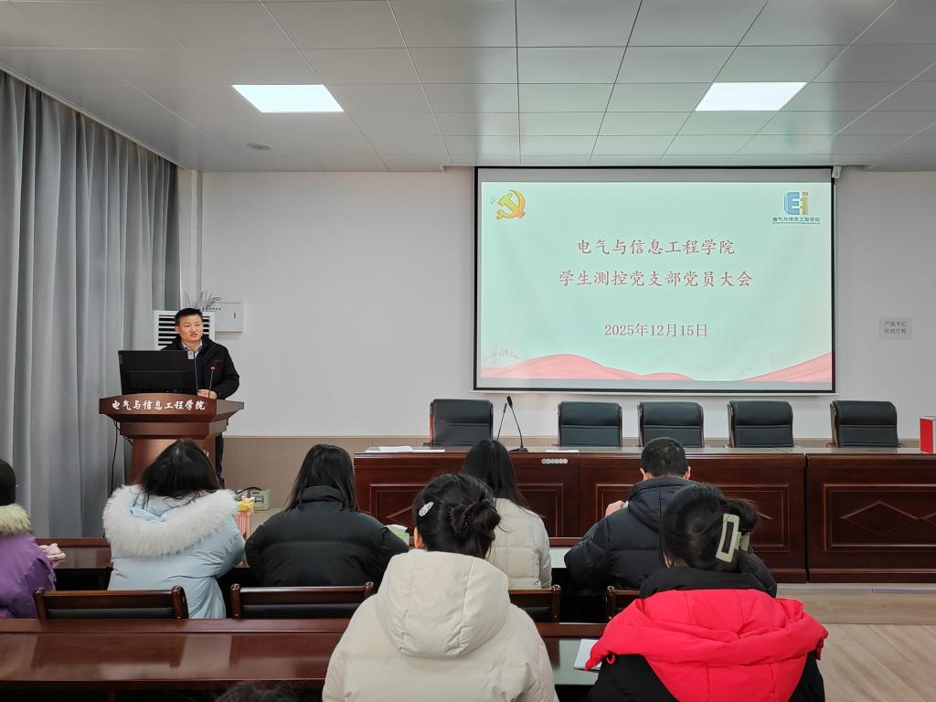 孔洋波在会上充分肯定了上一届支部委员会的工作成效,并代表学院党委向全体委员表示诚挚感谢。他指出,全体党员要以此次换届为契机,筑牢思想根基,始终把政治建设摆在首位,持续深化理论武装,在科创攻关、学风引领、志愿服务中展现党员使命担当。他要求新一届支委以身作则、团结协作,积极服务同学,用心用情用力解决同学们的急难愁盼问题,努力将支部建设成为有温度、有力量、有活力的坚强堡垒。