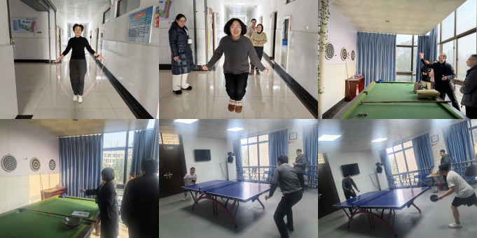 本次迎新联谊活动中共设置了跳绳、掷飞镖、乒乓球、趣味比赛四项活动,全体教职工踊跃报名,积极参与。在跳绳比赛中,老师们挥动跳绳,跳跃动作轻盈如风,绳子在空中画出绚丽的彩虹轨迹,每一次起落都尽显老师们的矫捷身手和优异体质;在掷飞镖比赛中,老师们从容不迫,动作如行云流水,从举臂到释放一气呵成,飞镖破空时仿佛有看不见的琴弦被拨动,发出无声的韵律;在乒乓球比赛中,参赛老师全神贯注,球拍与球相触的瞬间,薄如蝉翼的拍面震颤出细微弧光,乒乓球如被惊起的萤火虫,在方寸球台上编织光的诗行,现场掌声喝彩声不断;在趣味比赛中,老师们相互配合,相互搭档,攻防有序,斗智斗勇,欢乐声叹息声此起彼伏,尽显智力赛事的魅力。整个活动过程中,老师们尽显文体才华,各活动场地气氛热烈,喝彩声此起彼伏,开心笑语不绝于耳。