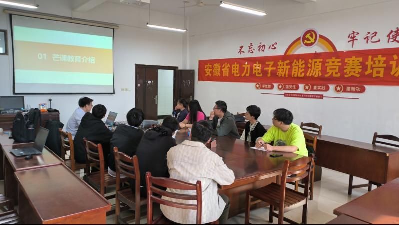 为提升电气工程及其自动化专业的学生在电力电子设计领域的专业素养和创新能力,为参加全省电力电子新能源学科竞赛做好准备。4月14日,学院组织参赛师生在电气楼304室开展了专项培训,本次培训特别邀请了安徽芒课教育科技有限公司的技术专家专程来院指导,学院感兴趣的学生和指导老师参加技术培训会,活动由学院副院长张前进主持。