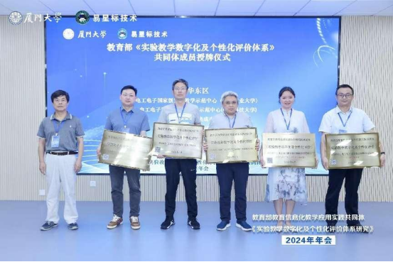 教育部组织成立《实验教学数字化及个性化评价体系》共同体旨在助力全国高校实验教学数字化和个性化评价体系的建设与完善,进一步深化全国高校教育教学的改革实践,提升新时代新工科人才配置质量和教育教学水平。此次年会上成立了高校实验教学指导委员会和工作委员会,我院实验中心成为共同体成员单位并接受教育部领导的授牌。