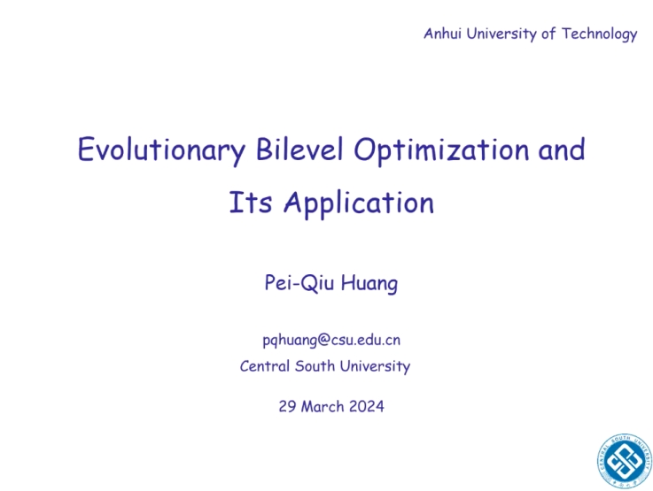 3月29日,中南大学自动化学院特聘副教授黄佩秋博士在线上为学院师生作题为“进化双层优化及其应用”的学术报告,旨在交流探讨多科学领域进化双层优化,学院副院长李飞主持报告会。本次讲座吸引了学院教师和研究生的积极参与。