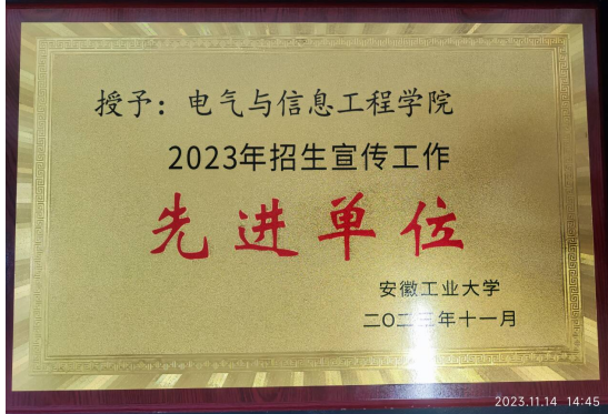 11月9日,学校召开2023年度本科招生工作总结暨2024年本科招生宣传工作会议,我院荣获学校2023年招生宣传先进单位。