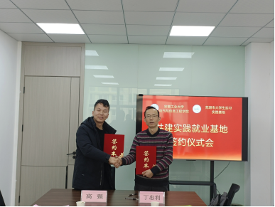 在芜湖市大学生实习实践基地,基地政府高校服务部部长高强对丁忠利一行来基地表示热烈欢迎,详细介绍了基地的创办宗旨、基地运行模式、已开展大学生实习实践工作和合作高校等情况,强调通过深化和探索校地政产多方合作和多方联动服务大学生成长,响应和服务我省经济社会发展意义重大。丁忠利详细介绍了学校的办学脉络、人才培养特色和学院发展成绩,指出在提升大学生实践能力,促进毕业生充分就业,服务美好安徽建设和制造产业链做大做强等方面,双方合作前景巨大。会上,学院与基地共同签订了大学生实习实践和就业实习基地框架协议;同时,走访参观了基地里的大学生住宿条件和基地实习实训教室等。