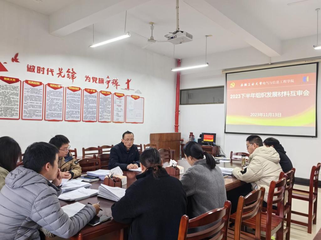 为切实抓好学院的发展党员工作,提升学院组织发展材料的规范化和严谨性。11月13日,学院党委在电气楼304会议室召开2023下半年党员发展材料互审会,学院党委书记丁忠利、副处级辅导员李修正、组织员何伟及各学生党支部书记参加会议。