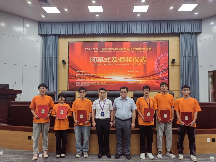 安徽省高校第一届电力电子大赛的成功举办,不仅为电力电子专业人士提供了一个学术交流与合作的平台,也为安徽省电力电子领域的发展注入了新的活力和动力。此次获奖充分展示了我校创新实践教育的成效,为激励学生广泛参与科学研究和创新实践起到了良好的示范与引领作用。学院将持续完善大学生的创新实践能力培养体系,优化以赛促学、以赛促教、以赛促长的工作机制,搭建好学生参加各级各类学科竞赛平台,继续发挥学科竞赛在人才培养中的重要作用,掌握行业人才需求,提高服务社会的能力。(撰写:郭亚晓,周郁明;审核:李冉,程木田)