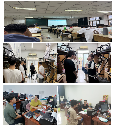28日上午,开学第一节课,丁忠利带领辅导员深入教室对教材使用情况、学生到课、听课状况等进行了详细的了解,课堂检查过程中教师备课充分、教学教案丰富生动,精神面貌良好,学生认真听课、积极思考、主动反馈,教室里展现出一幅“师生同台、教学相长”的求学画面。离开课堂后,辅导员深入宿舍进行了逐一检查,与学生亲切交谈询问有关新学期的规划,并开展防电诈宣传。新学期学院辅导员开展一次“走进学生心里”的谈心谈话,在梳理掌握受灾家庭、成绩滑坡等学生群体的基础上,辅导员们积极落实家校联系制度,开展深入细致的谈心谈话,给与关心指导与帮扶。