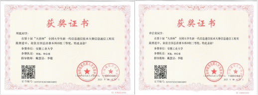 近日,第十届“大唐杯”全国大学生新一代信息通信技术大赛圆满落幕,我校共组建7支队伍参加比赛,其中周胤和仲启童同学组队(指导教师戴慧洁和李聪)在省赛中脱颖而出,最终以优异的成绩获得全国总决赛本科B组三等奖,同时我院学子还获得省赛二等奖和三等奖各3项。