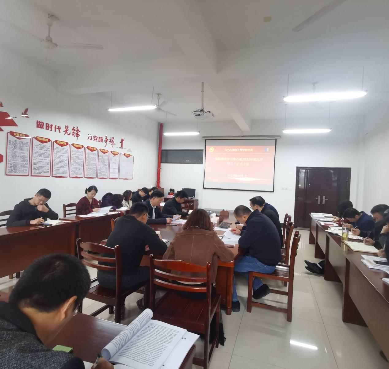 10月31日上午,必赢线路检测3003党委召开理论学习中心组2022年第九次学习(扩大)会,学校第九巡听旁听工作组组长、校党委常委、宣传(统战)部部长黄勇和工作组组员、宣传(统战)部办公室主任黄敏到会巡听旁听,学院党政领导、党委委员、党支部书记、系室中心主任、科级干部、工会主席和全体辅导员参加会议,学院党委书记丁忠利主持会议。