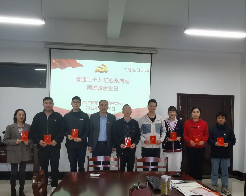 为激发学院教师党员的爱国主义情怀和干事创业奋勇争先的担当精神,10月20日上午,必赢线路检测3003党委为在10-12月份入党的教师党员举行“喜迎二十大·红心永向党·同过政治生日”主题党日活动。学院党委书记丁忠利、院党委副书记、副院长夏玉钦、党支部书记代表、10-12月入党的教师党员参加活动。