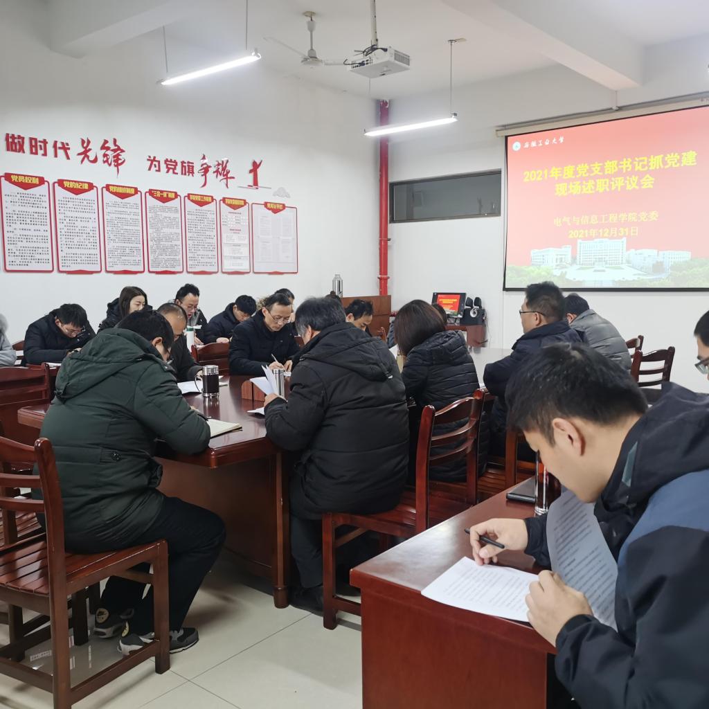 12月31日上午,电气学院党委在电气楼304会议室召开2021年度党支部书记抓党建现场述职评议会,学院党政领导、党委委员、纪委委员、党支部书记、系室(中心)主任、工会主席、科级干部、师生代表等参加会议。院党委书记丁忠利主持会议。