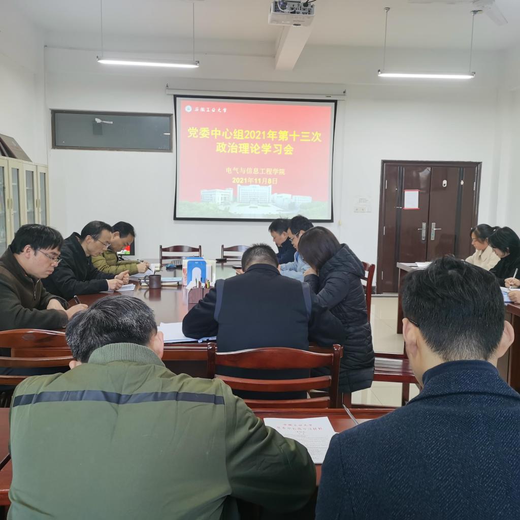 11月8日下午,电气学院党委在电气楼308会议室召开理论学习中心组2021年第十三次学习会,学院党政领导、党委委员、党支部书记、科级干部、工会主席和全体辅导员参加了会议,院党委书记丁忠利主持会议。