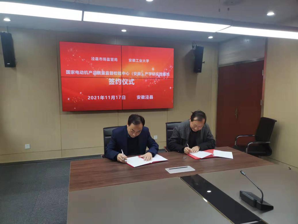 为了深化产学研合作,提升人才培养质量。11月17日,必赢线路检测3003院长王兵率队至安徽省电机产品及零部件质量监督检验中心举行产学研合作签约与基地授牌活动,泾县市场监督管理局党组书记、局长胡小诚,省电机检测中心主任赵云峰、副主任潘柏根出席签约仪式,电气学院骨干教师聂建华、冯旭刚、吴紫恒、王正兵和赵远等人参加了对接活动。