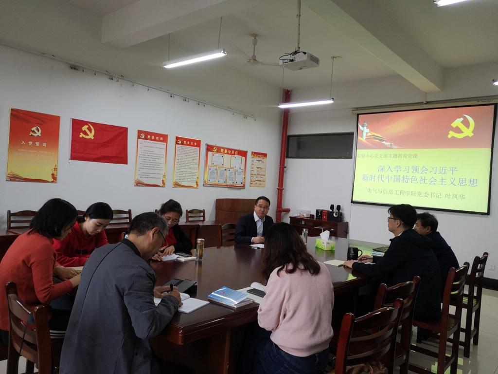 10月23日上午,电气学院实验中心全体党员参加“不忘初心、牢记使命”主题教育学习会,学院党委书记叶凤华以“深入学习习近平新时代中国特色社会主义思想,做新时代合格的大学教师”为题,为大家上党课。