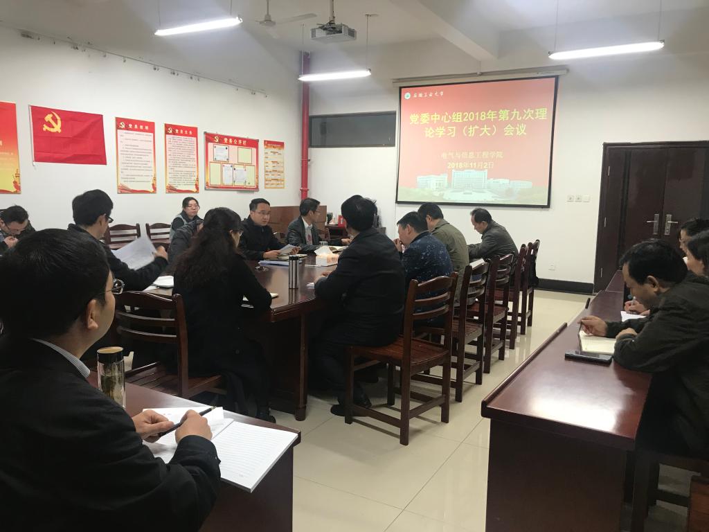 11月2日上午,电气学院党委在电气楼304会议室召开中心组政治理论学习(扩大)会议,学院党政领导、党委委员、党支部书记、各系室中心主任、科级干部和全体辅导员参加了会议,会议由院党委书记叶凤华主持。