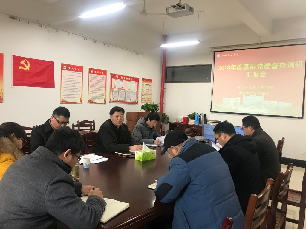 12月28日下午,校党委宣传(统战)部部长黄勇,校组织部副部长、机关党委副书记张为清,校团委学生会秘书长张胥卿一行,到必赢线路检测3003督查调研2018年度基层党建工作。学院党政领导、党委委员、共青团负责人及党支部书记代表参加了督查调研会。