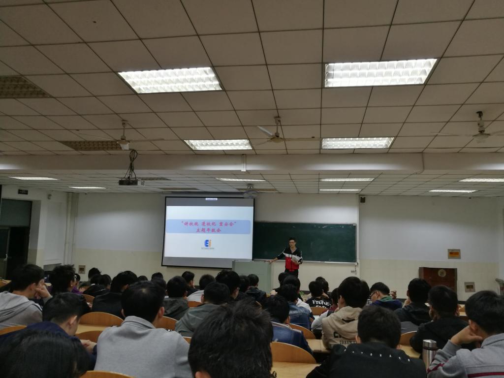 10月18日晚,电气学院2015级在秀山校区阶教201召开“讲校规、遵校纪、重安全”主题教育年级会,2015级毕业班同学参加了会议。
