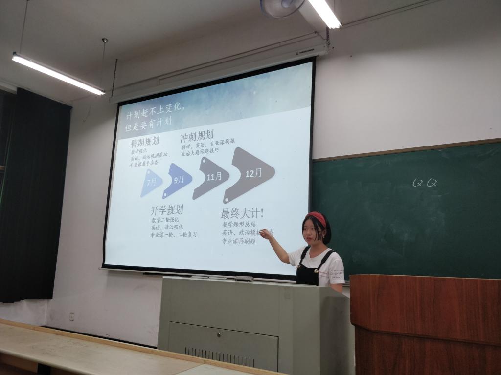 会上,学长们分别从报考学校、科目重点、时间分配、心态调整、复试调剂等方面介绍了自己的考研经历,分享了自己的心路历程。在自由提问环节,学长学姐耐心地为同学们做了解答,并且还向同学们推荐了一些优秀的教辅资料。