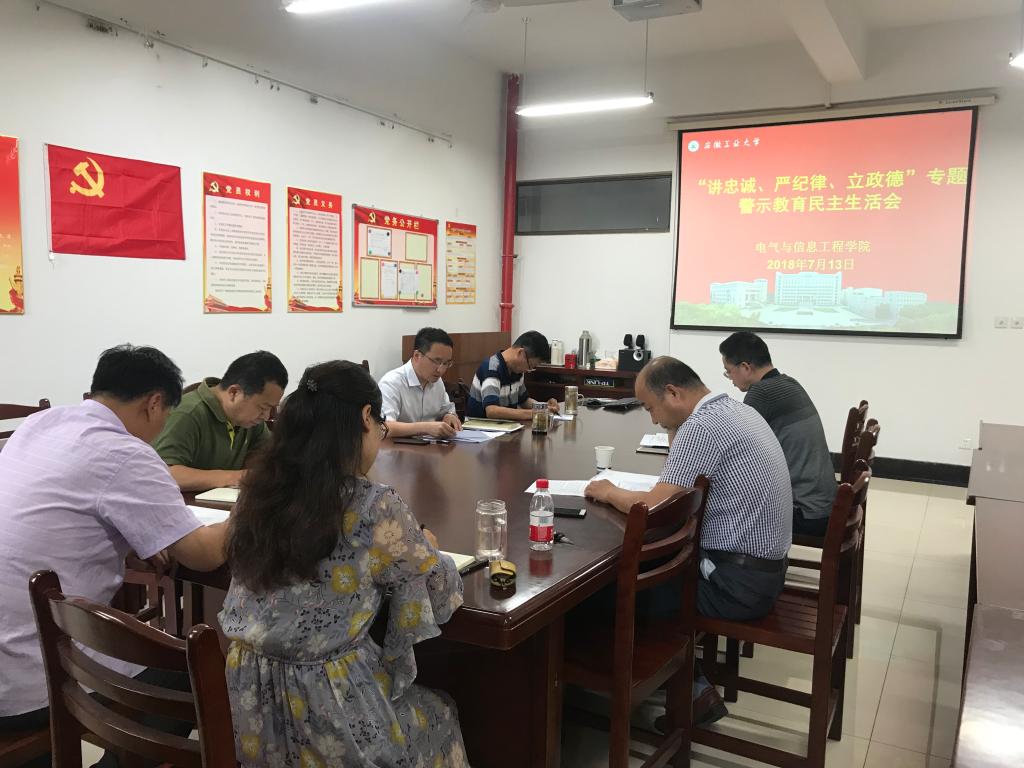 7月13日下午,电气学院党委在电气楼304会议室召开“讲忠诚、严纪律、立政德”专题警示教育民主生活会,学院领导班子成员、党委委员参加了会议,会议由院党委书记叶凤华主持。