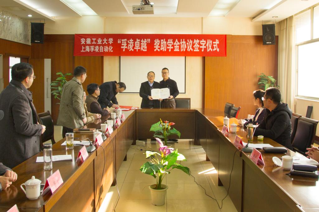 11月24日上午,必赢3003no1线路—上海孚凌自动化控制系统有限公司“孚凌卓越”奖助学金捐赠协议签字仪式在佳山校区会议中心举行。副校长葛芦生出席仪式并讲话。孚凌自动化公司董事长彭正伟、财务总监杨军,我校教育发展基金会秘书处负责人和电气学院党政领导参加仪式。