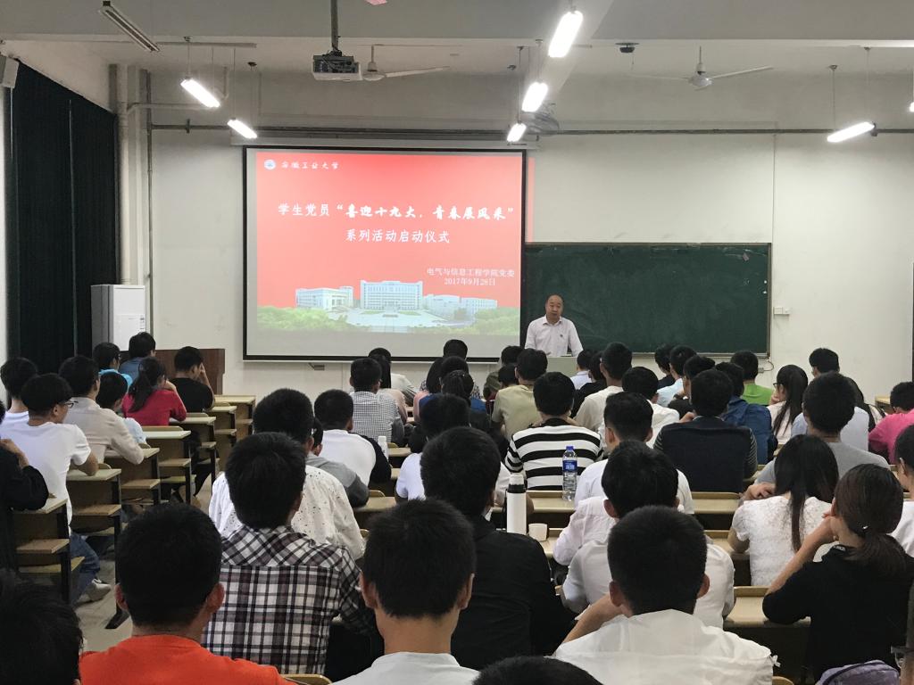 9月28日中午,电气学院学生党员“喜迎十九大,青春展风采”系列活动启动仪式在电气楼顺利举行。学院党委副书记、副院长郭宏、全体学生党支部书记、辅导员出席活动,全体学生党员参加了本次动员。