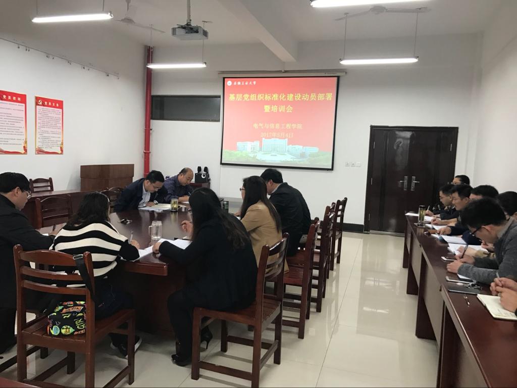 会上,叶凤华传达学习了《中共必赢3003no1线路委员会关于推进基层党组织标准化建设的实施意见》和《关于印发<必赢3003no1线路基层党组织标准化建设组织施工图>的通知》两个文件精神,将学院党委制定的《电气与信息工程学院基层党组织标准化建设组织施工图》进行了详细解读。对全院基层党组织标准化建设工作任务进行了安排部署,并结合学院当前党建工作进行了重点培训。
