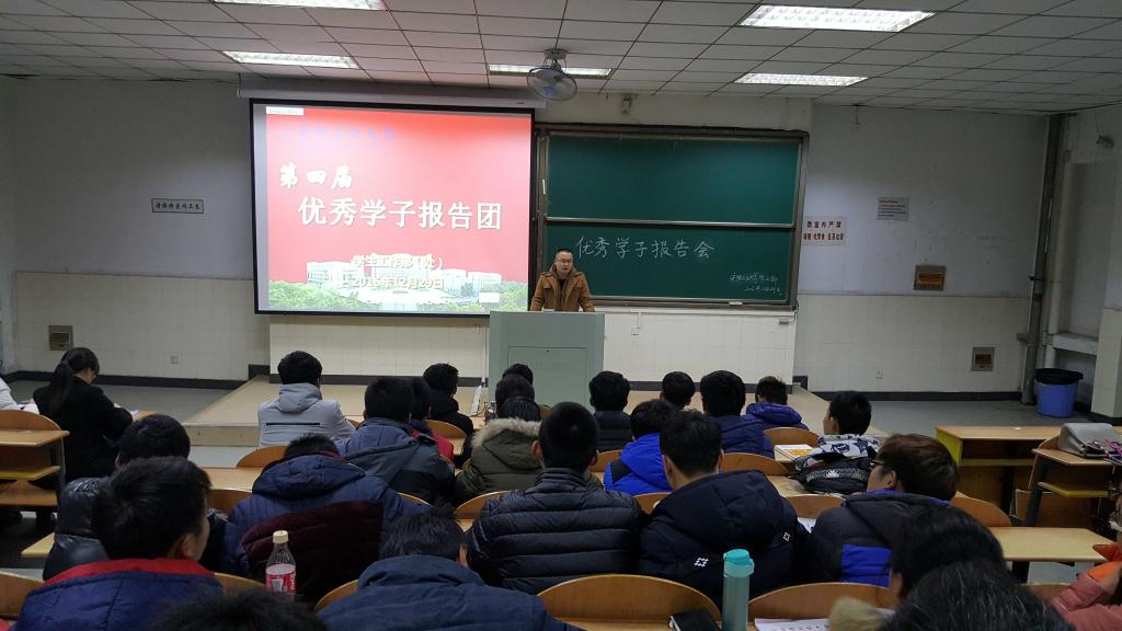 12月29日晚,我校优秀学子报告团成员先进事迹报告会在秀山校区举行。4名同学的成长经历和收获感悟启迪心灵、催人奋进,赢得了电气学院500余名新生的阵阵热烈掌声。