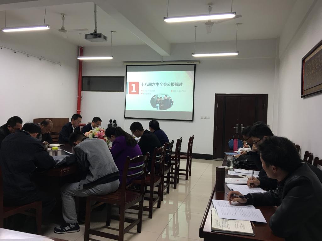 叶凤华在重点传达学校党委书记刘新跃在学校专项巡视反馈意见整改动员会上讲话精神后,带领全体同志学习《中国共产党第十八届中央委员第六次全体会议公报》,并对六中全会精神以及全会审议通过的《关于新形势下党内政治生活的若干准则》、《中国共产党党内监督条例》进行了认真解读。叶凤华希望学院党员干部要认真学习领会党的十八届六中全会精神,把思想和行动统一到全会精神上来,时刻牢记自己第一身份是党员,将贯彻落实全会精神与自身思想、工作实际紧密结合,以上率下,扎实工作,保证各项任务落地生根;学院各党支部要定期开展学习研讨,进一步增强思想认识,承担好责任,加强支部规范化建设工作,围绕整改任务要求,将“全面从严治党”真真正正落到实处。