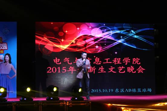 10月19日晚,电气学院2015级迎新晚会在东区AB栋篮球场隆重举行。这是我院第一次举办外场晚会,受到了院内各级领导、老师的高度重视。校团委副书记杜飞、电气学院领导、全体辅导员、各兄弟学院团委学生会代表及2015级全体新生观看了晚会。