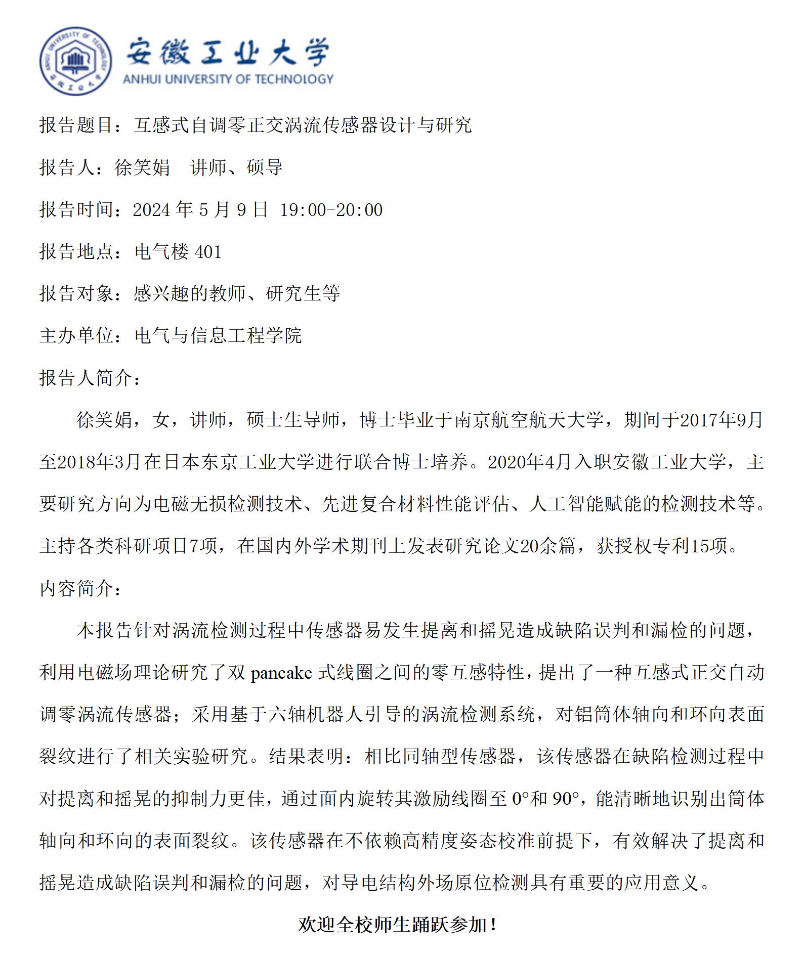 砺山学术报告之三十六-互感式自调零正交涡流传感器设计与研究