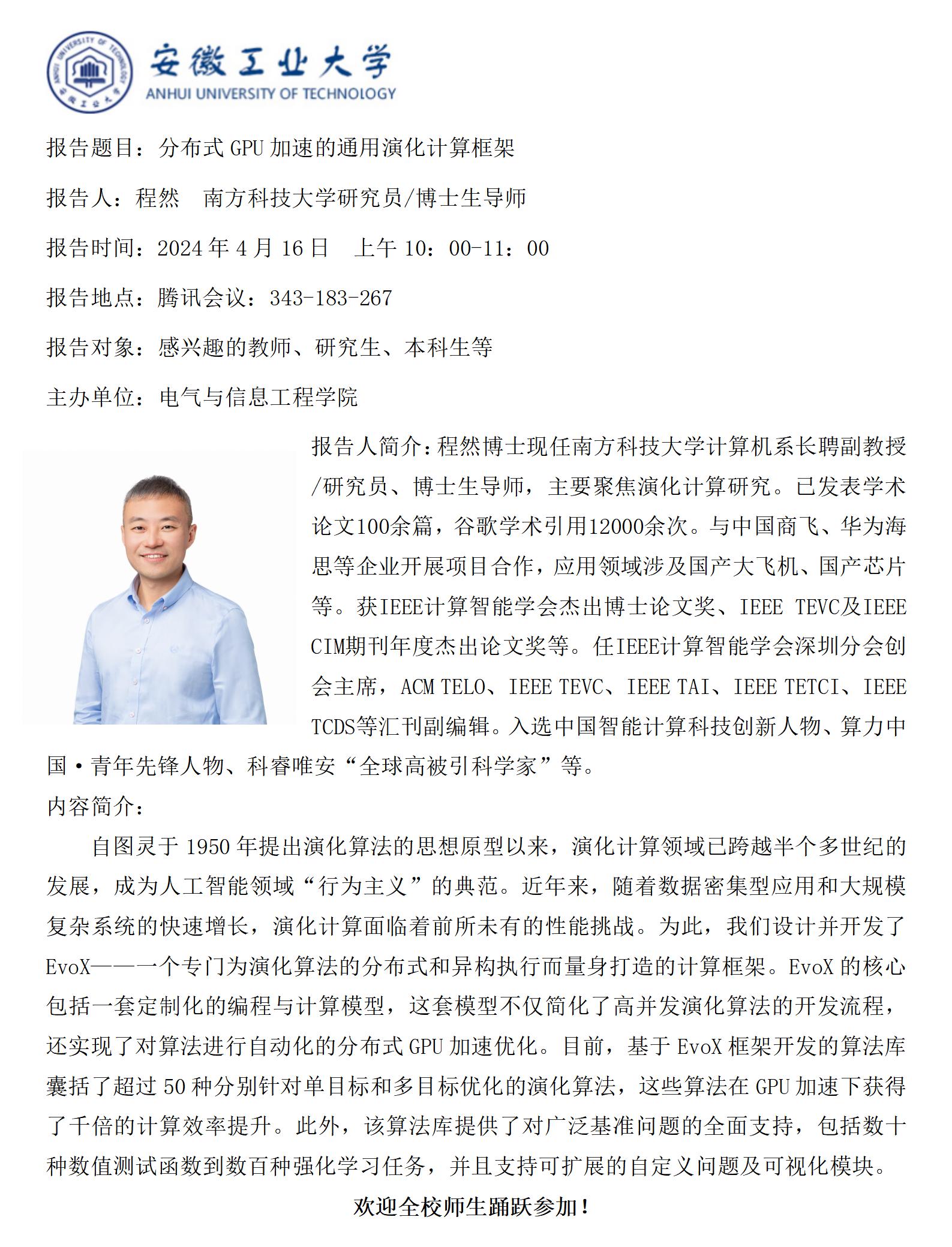 “谦之”学术讲坛之八十-分布式GPU加速的通用演化计算框架