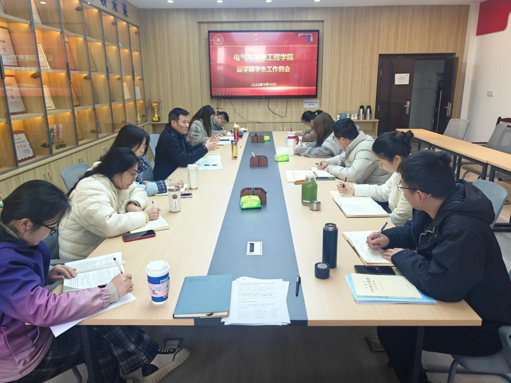 3月10日下午,我院在电气楼308会议室召开新学期学生工作例会暨学风建设专题会议,紧扣2026年学院学风建设年核心目标,重点研讨《必赢线路检测30032026年学风建设年任务分解与活动细则》(以下简称“细则”),部署新学期学生工作重点任务。学院党委副书记、纪委书记、副院长孔洋波主持会议,全体辅导员参加会议。