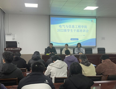 为强化2022级学生干部履职能力,明确近期毕业班工作重点,保障各项工作有序推进,3月16日上午,我院在电气楼113召开2022级学生干部培训会。会议由2022级辅导员甘如美江、杨恒基、孔瑜琦共同主持,2022级各班主要学生干部参会。