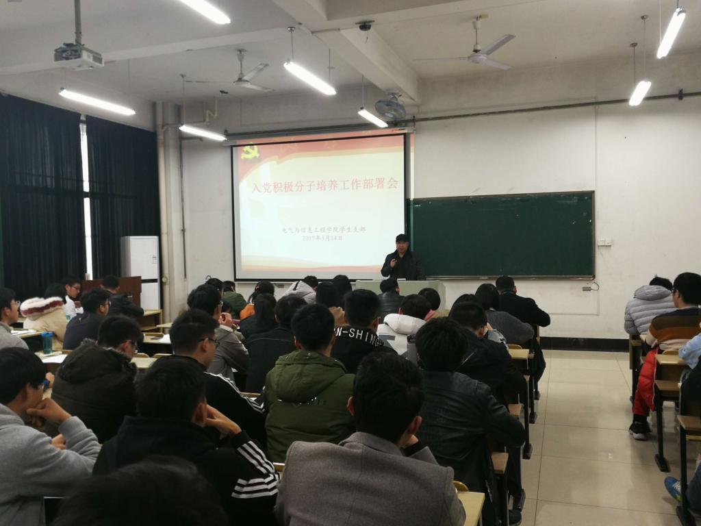 为进一步做好入党积极分子的培养考察工作,突出培养考察工作的过程管理,3月14日中午,电气学院在电气楼112教室召开入党积极分子培养考察工作部署会。院党委副书记、副院长郭宏,各学生党支部书记,各年级辅导员以及列入今年发展计划的全体入党积极分子参加了会议。
