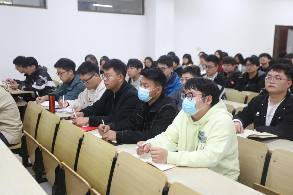 丁忠利以介绍党的二十大精神主旨开篇,他指出:党的二十大是一次承前启后、继往开来的大会,必将以“高举旗帜、凝聚力量、团结奋进”,开创党和国家事业发展新局面而载入史册。他鼓励青年学子要坚定不移听党话、跟党走,立志做有理想、敢担当、能吃苦、肯奋斗的新时代好青年,主动拥抱时代,经受历练,增强本领,为党和人民的事业做出更大的贡献。