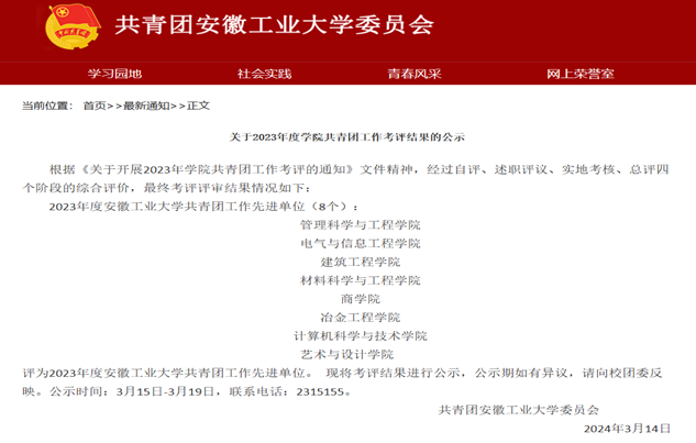 在必赢3003no1线路2023年度共青团工作考核评价中,必赢线路检测3003团委凭借全年的努力和突出表现,荣获优秀等次。此次考核活动全面评估了各学院团委学生会在理论学习与思想教育、社会实践与志愿服务、第二课堂活动、创新创业等多个方面的工作成效,旨在激励各学院团委进一步发挥团组织在青年学生中的引领作用,推动团学工作再上新台阶。