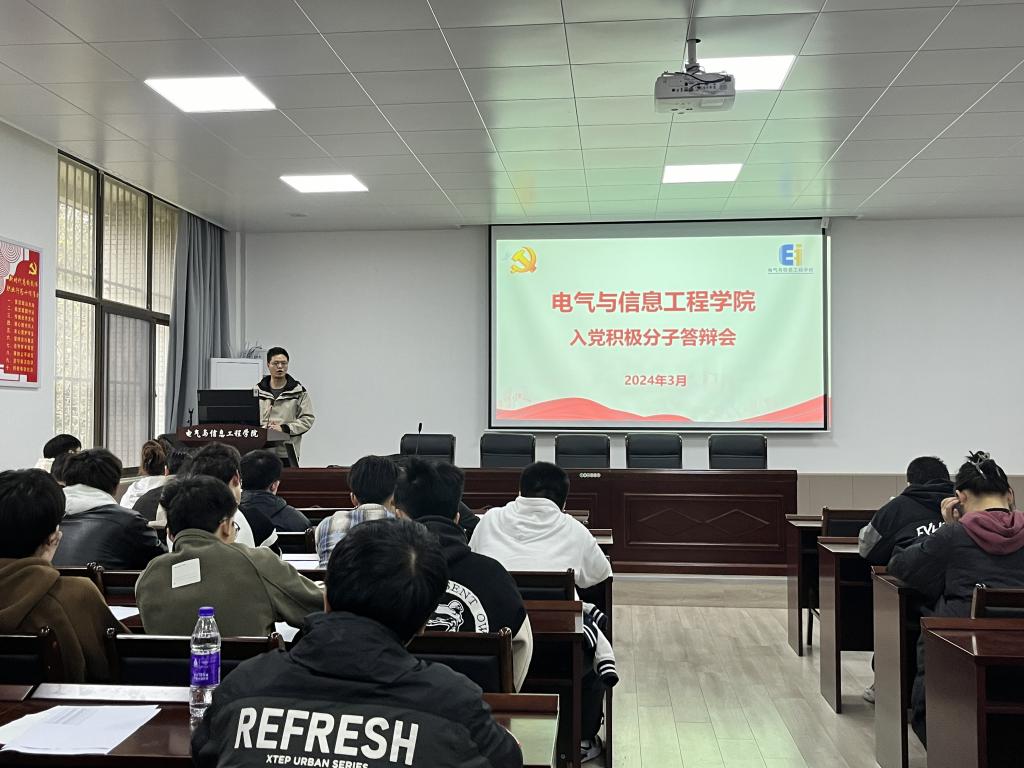 为有效推进党员发展工作的规范化、科学化和系统化,进一步加强对入党积极分子的培养、教育和考察,3月25日下午,我院学生党支部在电气楼112、113教室开展2022级入党积极分子答辩会。院学生测控党支部书记杨恒基、学生电气工程党支部书记甘如美江、副处级辅导员李修正、院团委学生会学生骨干、各学生支部党员代表及2022级全体入党积极分子参加。