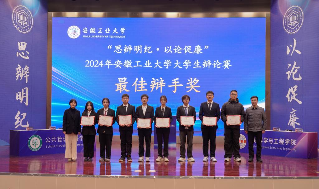本次大赛对优秀组织奖、冠亚季军代表队和全部赛程中涌现出的最佳辩手进行了颁奖。公共管理与法学院获冠军,管理科学与工程学院获亚军,必赢线路检测3003、能源与环境学院代表队获季军。公共管理与法学院、管理科学与工程学院、必赢线路检测3003、能源与环境学院、外国语学院、马克思主义学院、机械工程学院获“优秀组织奖”。必赢线路检测3003郝钰涵等12名同学获“最佳辩手奖”。