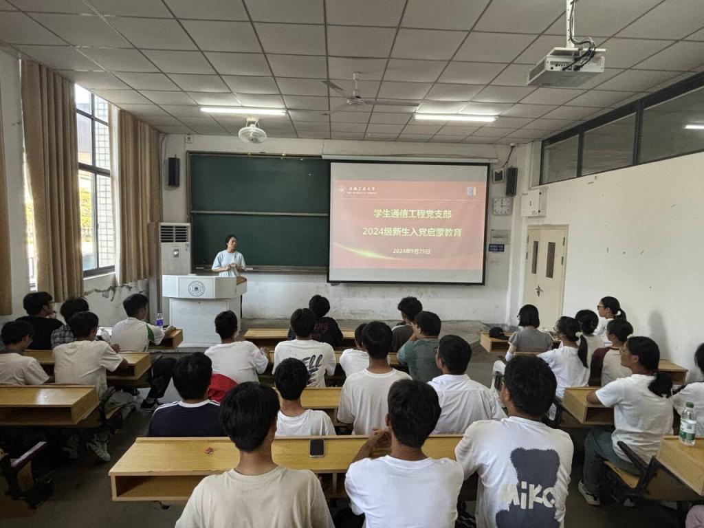 为进一步引导和帮助广大新生了解党的基本知识、历史使命和入党程序,端正入党动机,树立正确的世界观、人生观和价值观,9月29日,学生通信工程党支部于佳山校区教一115开展2024级新生入党启蒙教育。会议由党支部书记汤敏主讲,通信工程专业全体新生参加。