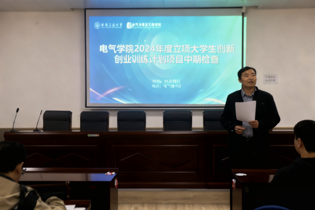 为加强大学生创新创业训练计划项目过程管理,及时掌握项目实施进展与质量,11月12日下午,学院在电气楼113教室开展2024年度立项大学生创新创业训练计划项目中期检查答辩会。本次活动由院团委副书记杨恒基主持,学院副院长张前进及各系室主任组成评审组,对项目推进情况进行专业审视与指导。