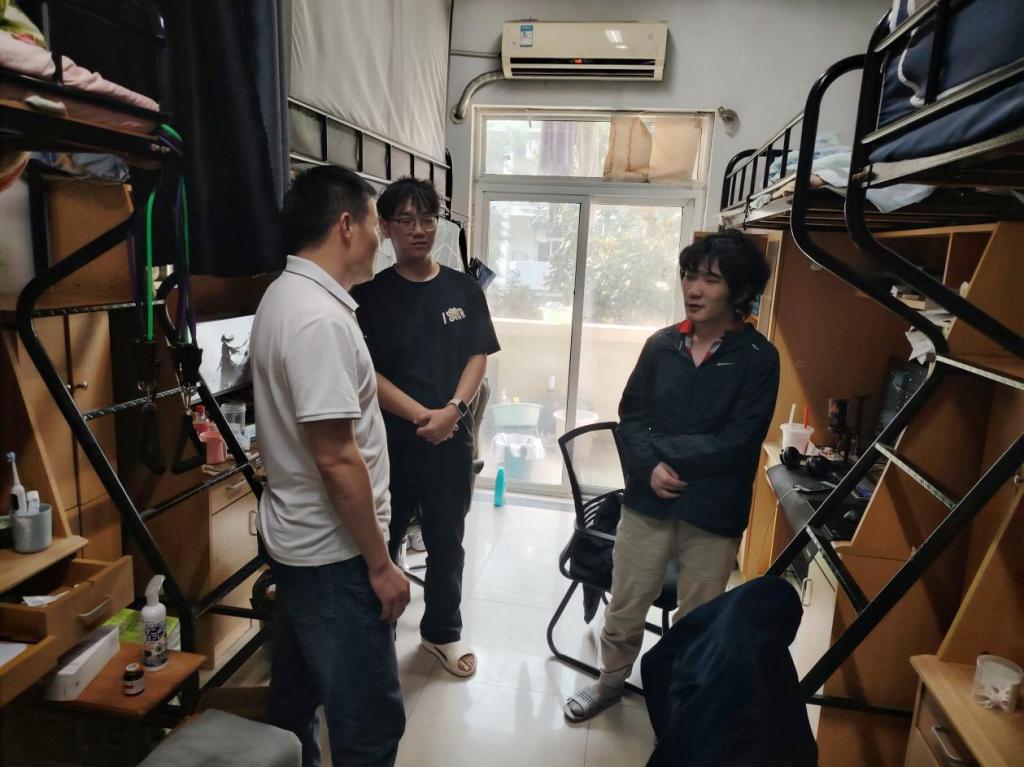 在查寝过程中,孔洋波重点强调了考风考纪的严肃性。他向同学们详细说明了学校对考试违纪作弊行为的处理规定,殷切叮嘱大家务必遵守考试纪律,坚持诚信应考,用真实成绩为本学期的努力画上句号。他尤为关切同学们近期的学习状态和复习情况,认真询问大家在备考中是否遇到难题、课程学习上还有什么疑问。同时针对同学们在职业探索方面的困惑,孔洋波基于前置职业引导及分阶段施策的办法,聚焦大二年级职业定位与基础能力储备、大三年级职业路径决策与求职能力提升,分年级进行了精准指导。针对即将离校的大四毕业班学生,孔洋波与辅导员们特别开展了“毕业领航”行动:一方面,深入关切每位同学的就业去向落实情况,对仍在求职的同学进行“一对一”简历优化与面试技巧指导,鼓励他们把握最后就业冲刺机会;另一方面,对已确定去向的同学,重点提醒离校前需完成的各项手续(如档案转递、户口迁移、党团组织关系转接等),并围绕职场适应、角色转换、权益保护、诚信履约等主题进行了“最后一公里”的贴心辅导,勉励大家站好毕业前最后一班岗,安全文明离校,自信从容迈入人生新阶段。此外,结合毕业季特点,还针对宿舍内现存问题和安全隐患(如物品堆积、用电安全、财物保管等),提出了具体的整改要求。