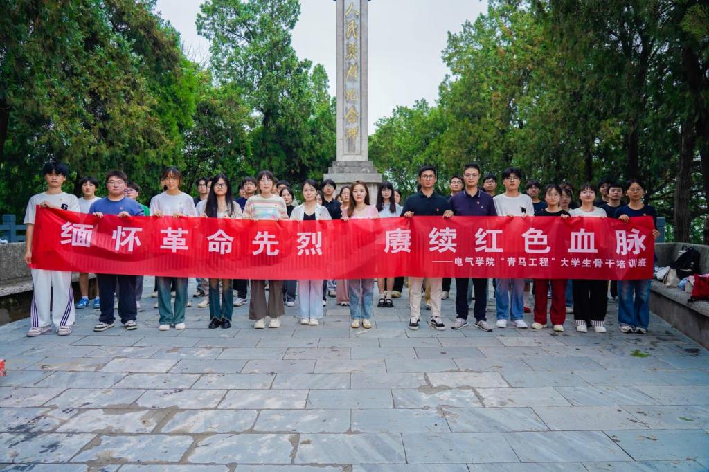 来到烈士陵园,青马学员们认真聆听革命先辈的英雄事迹,讲解员用生动的语言、真实的情感,再现了烈士们在艰苦岁月中不畏强敌、不怕牺牲的英雄形象,让在场的每一个青马学员深受触动。随后,学员们徒步登上小坨山,来到革命烈士纪念碑前,瞻仰纪念碑,党员同志面向中国共产党党旗郑重宣誓。甘如美江带领学员在烈士纪念碑前围绕在学风建设上做先锋者、在校规校纪上做守卫者、在志愿服务上做示范者等三个维度,开展“青马工程”大学生骨干主题教育学习活动,她寄语学员们铭记峥嵘岁月,赓续奋斗精神,汲取奋进力量,自觉践行电气青年学子作风清单。