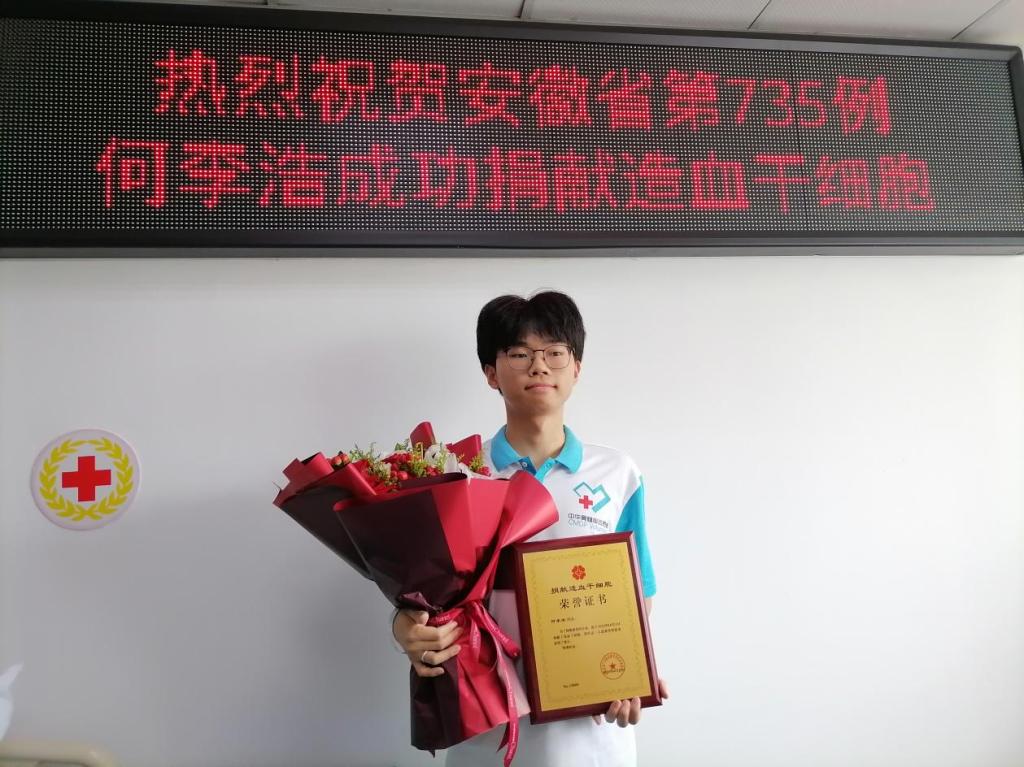 今年2月25日,刚开学第10天,何李浩突然接到市红十字会工作人员的电话,告知他与一名身患白血病的小男孩配型成功,希望能够得到他的造血干细胞捐献。通话结束后,何李浩的第一反应是这会不会是一种新型骗局?学校常态化地开展反诈防骗宣传教育,让他立即联系辅导员报告核实,同时也和学校上一位捐献的学长了解情况。何李浩确定事情的真实性,同时还了解到此次配型成功的概率是几十万分之一,这让何李浩突然意识到捐献造血干细胞是两条平行生命轨迹的交汇。在征得家人理解和支持后,何李浩坚定地选择捐献。经过捐前体检、身体锻炼、合理饮食、规律作息,于4月11日上午11点30分完成造血干细胞的捐献。学校对何李浩捐献的爱心和善举高度重视并予以大力支持。捐献当天,学院党委副书记、纪委书记、副院长孔洋波和辅导员第一时间专程前往看望和慰问。