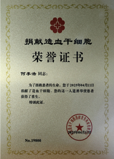 何李浩是我院2023级电子信息专业的学生,2023年10月刚入学后不久,何李浩在参加校园无偿献血活动中了解到捐献造血干细胞救助他人的意义后,毅然留样加入中华骨髓库,留下当代大学生的大爱精神和青春担当,而这份爱心的实现在大家共同的努力下,一年半后就开花结果。