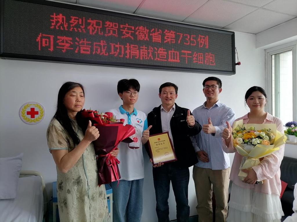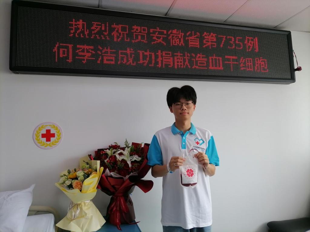 4月11日上午,历时4小时30分钟,我院2023级学子何李浩在芜湖弋矶山医院成功完成造血干细胞捐献,为一名患白血病的小患者带去了生命的新希望。何李浩同学成为我校第4位捐献造血干细胞的在校大学生,也是马鞍山市第111位造血干细胞的捐献者。