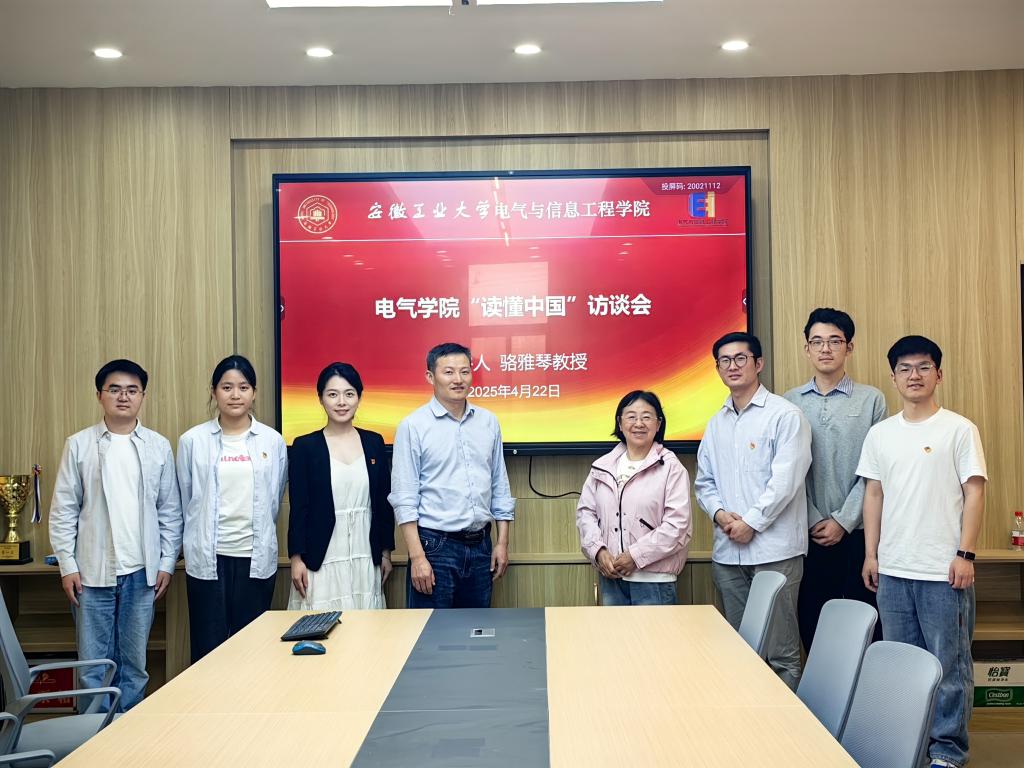 为持续推进教育强国建设,积极响应教育部《关于开展2025年“读懂中国”活动的通知》,充分发挥学校关工委“五老”亲历者、见证者和实践者的优势,教育引导青少年学生坚定马克思主义信仰、坚定中国特色社会主义信念,立报国强国的大志向,做挺膺担当的奋斗者。4月22日,学生电气工程党支部在电气楼308室举办了“五老薪火传使命 ‘电’亮青春新征程——‘读懂中国’访谈会”,特邀学院荣休教师、全省优秀教育工作者骆雅琴教授担任主讲,学院党委副书记、纪委书记、副院长孔洋波主持,学生电气工程党支部书记蒋安东及部分党员代表参加学习交流。